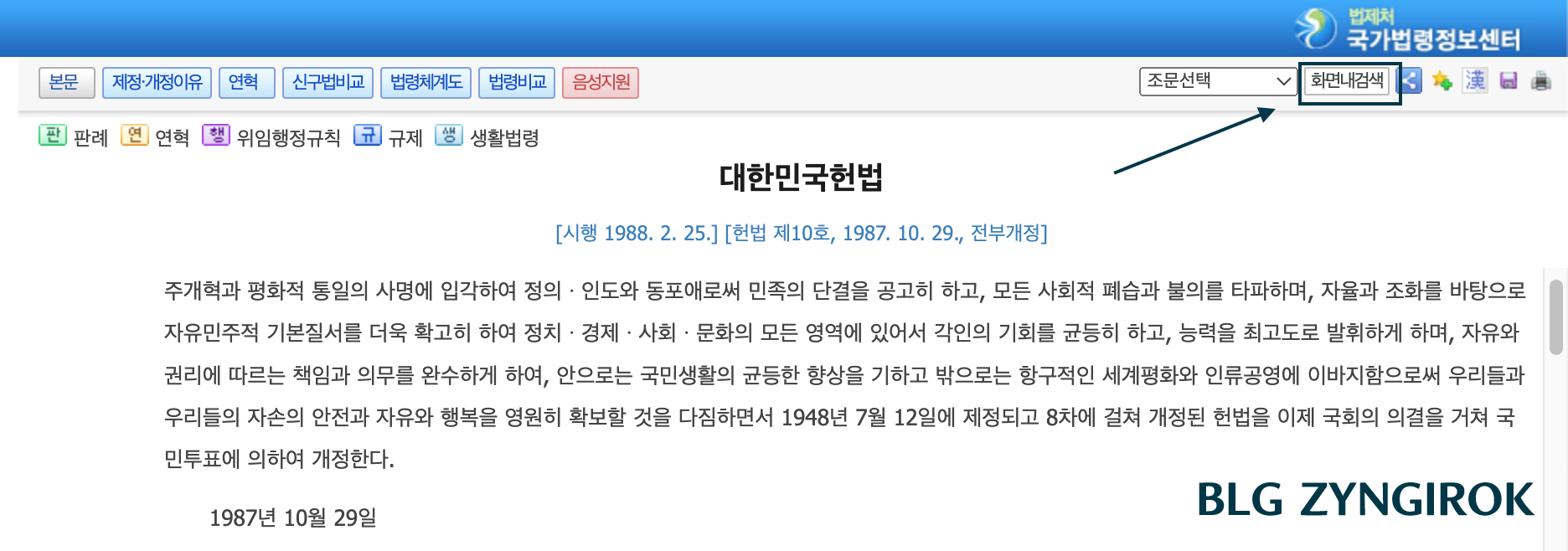 헌법 조문을 확인하는 방법에 대한 글이빈다.