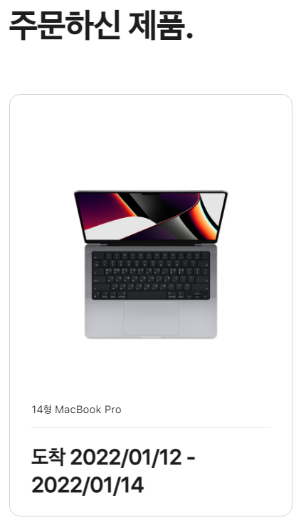 도착 예정 기간은 앞선 링크와 동일하게 1월 12일부터 1월 14일로 표기되어 있고 주문 처리 현황은 이전과 동일하다. 반도체 수급과 전 세계 물류가 어려운 상황이기 때문에 예상하고 이해할 수 있는 부분이라 많이 놀라진 않았다. 다만 조금 가슴이 아렸다. 또 도착 예정 기간에 도달한 첫 째날에 이런 업데이트를 받은 걸 보면 항상 높은 위치에서 소비자를 바라보는 것만 같던 애플과는 사뭇 다른 기분이 들었다. 의외로 소비자와의 약속에 신경을 안 쓰진 않는구나 하는 생각도 들었다. 그렇다고 배송이 늦어지는 걸 환영한다는 말은 전혀 아니니 오해하지 말자.