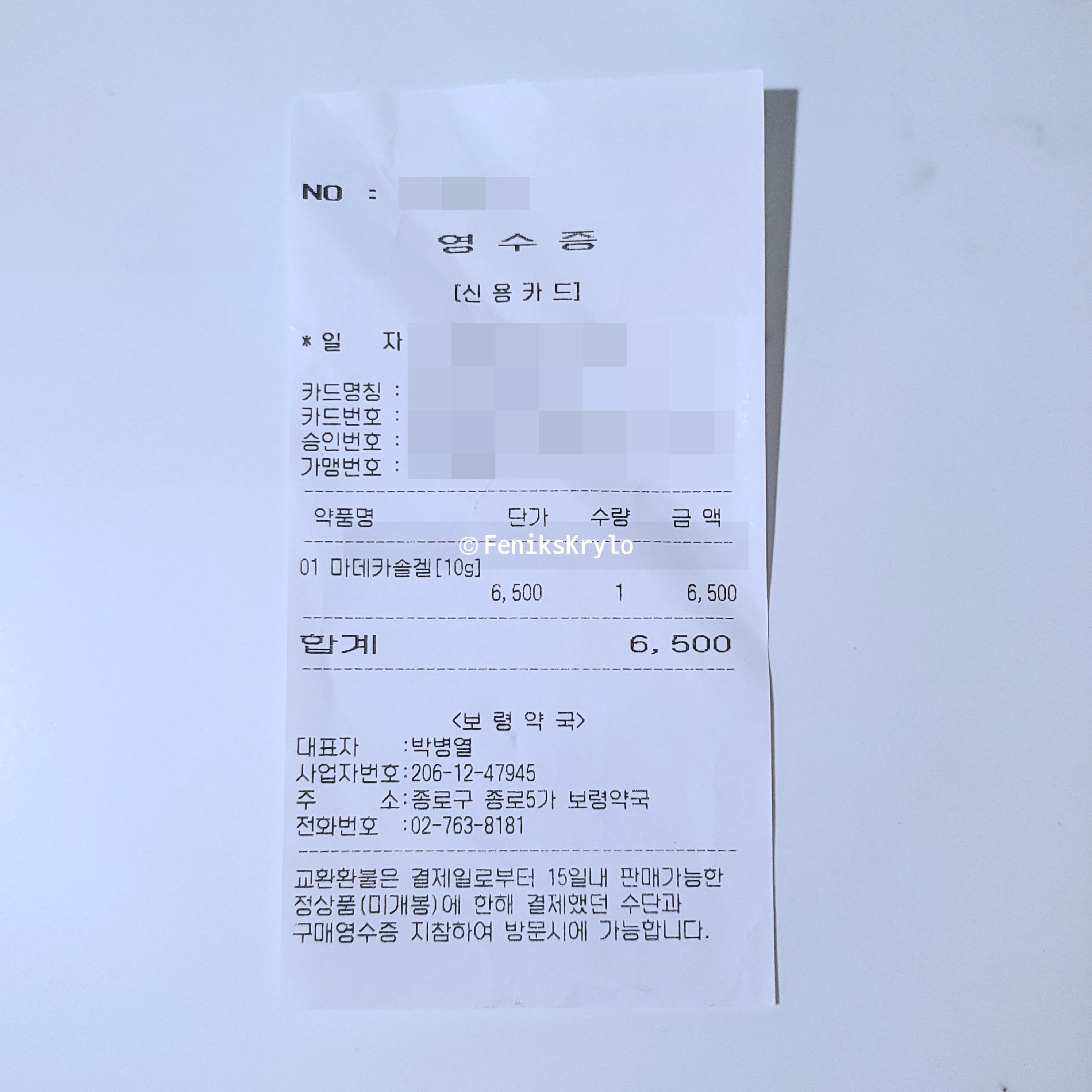 아래의 사진들은 각 약국에서 구매한 영수증이다.