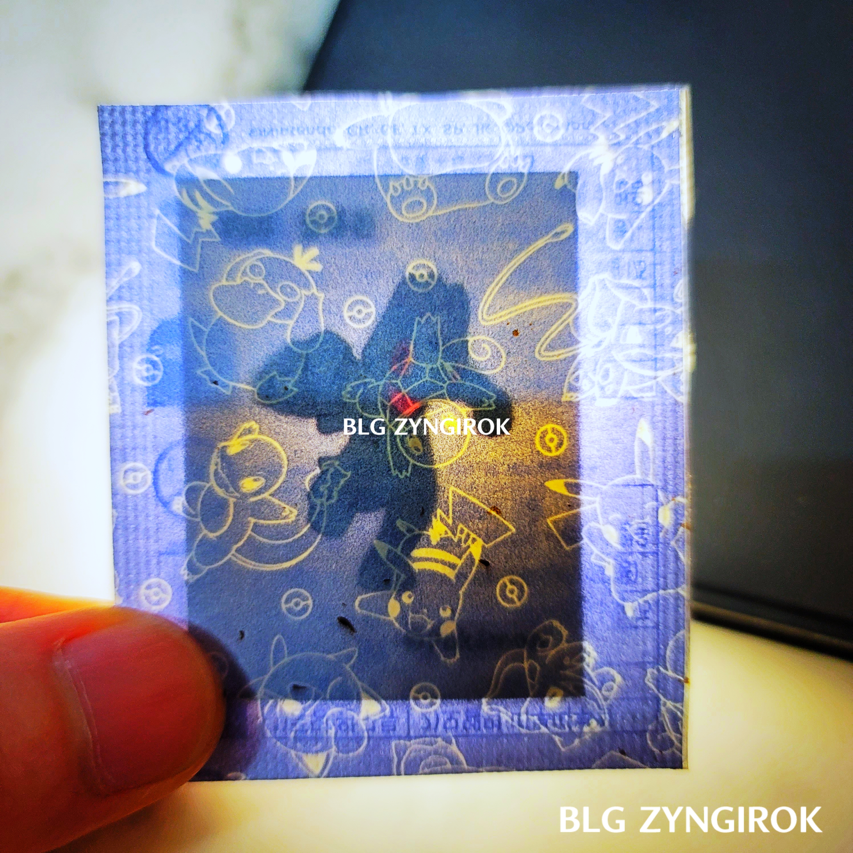 포켓몬스터빵-하나가-놓여있다.띠부띠부씰-시라소니를-들고있다.