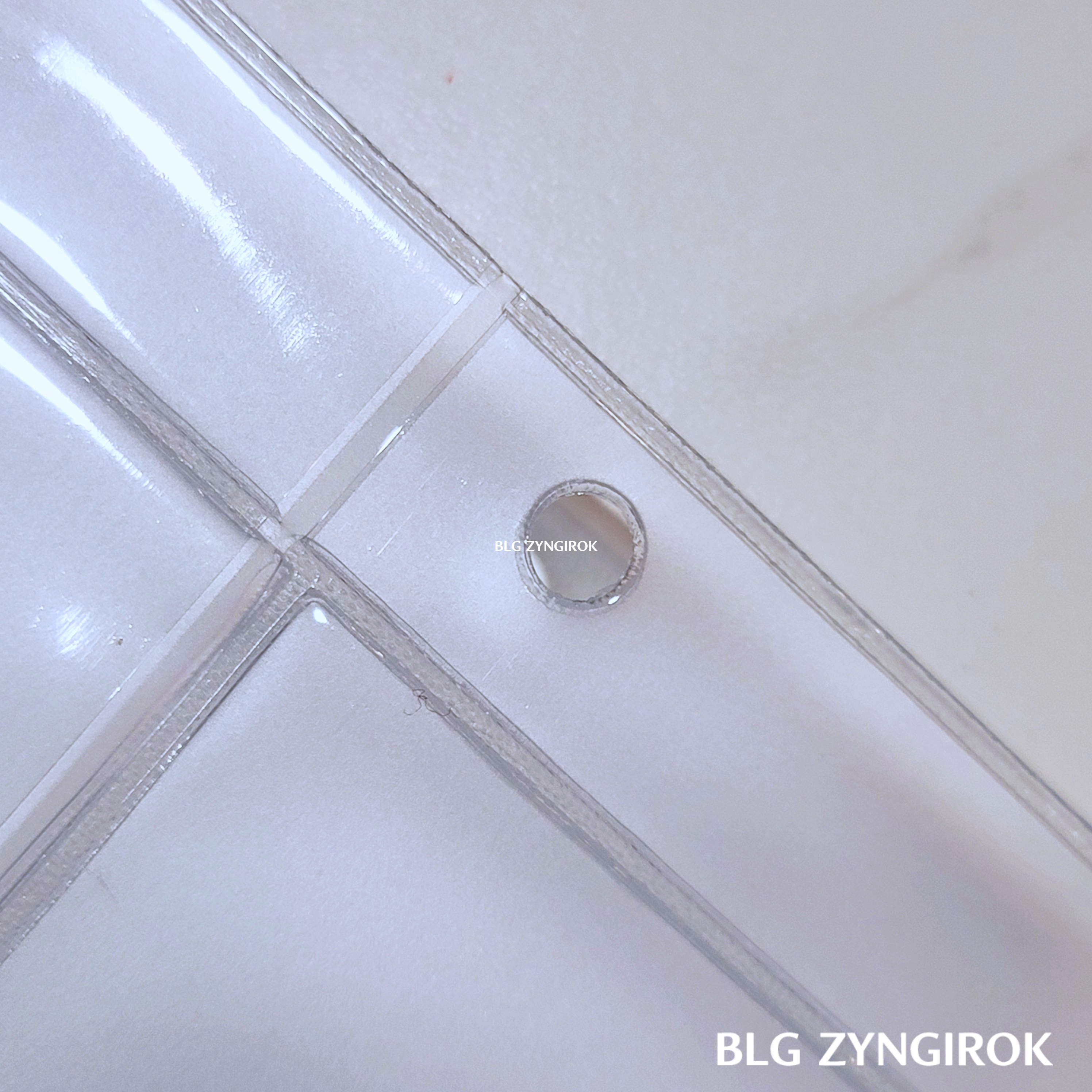 속지는 제작된 그대로 배송되기 때문에 바인더에 결합할 구멍을 하나하나 뜯어줘야 한다. 쉽게 떨어지지만 조심히 다루길 추천한다. 너무 세게 하면 찢어질 수 있다.