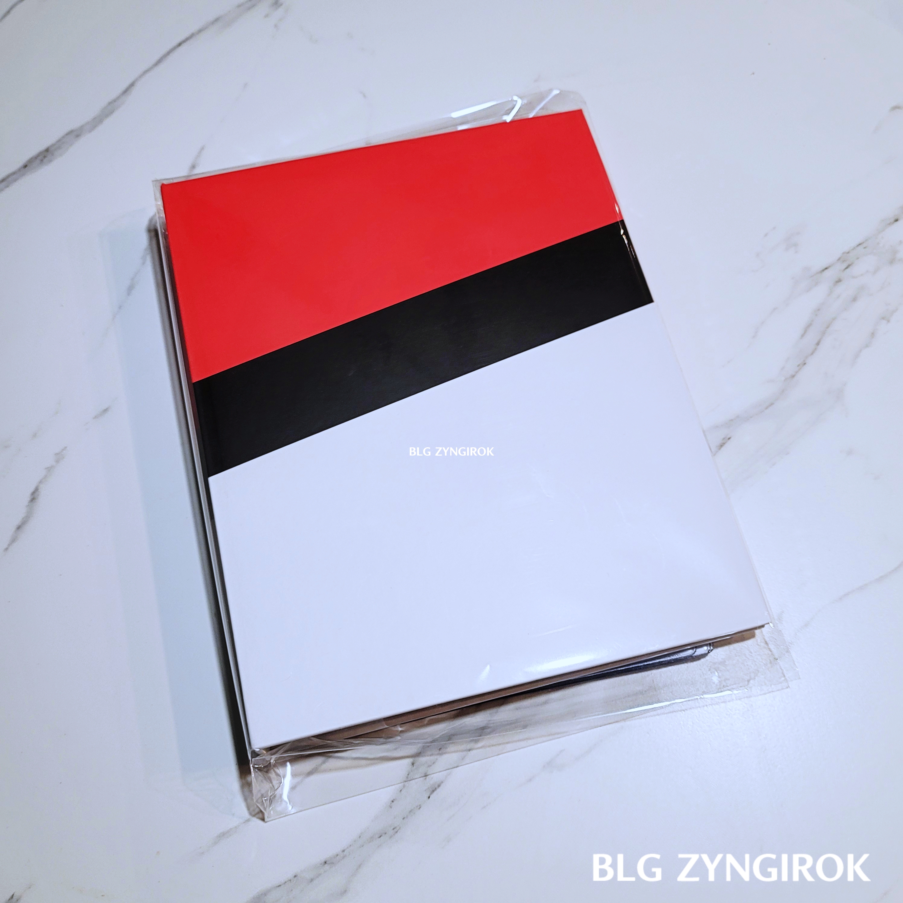 구매한 씰북은 포켓몬스터 시그니처 빨간색과 흰색 사이 두꺼운 검은 선이 자리한 디자인이다.